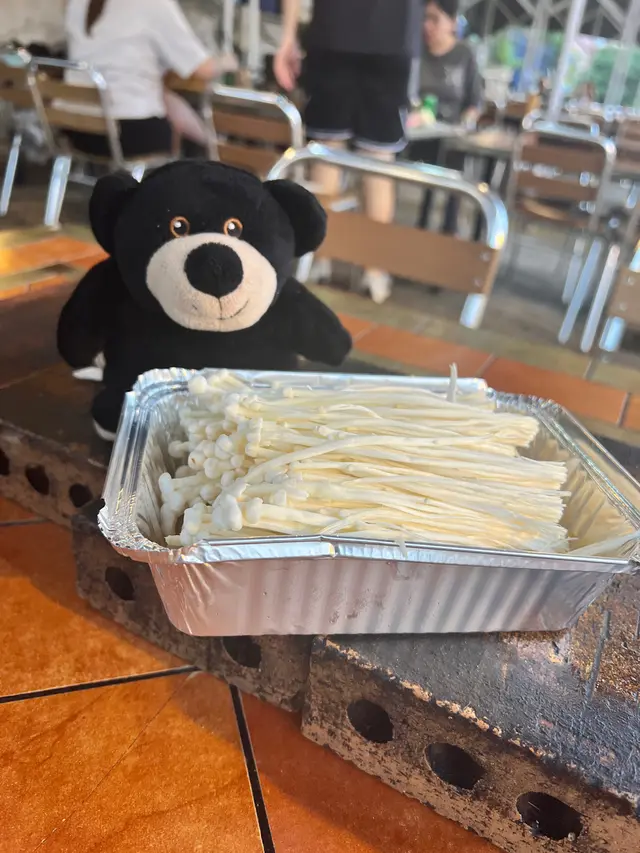 金菇及芝士碎牛油倒落錫紙兜內,放上燒烤爐上邊燒大約10分鐘左右就完成