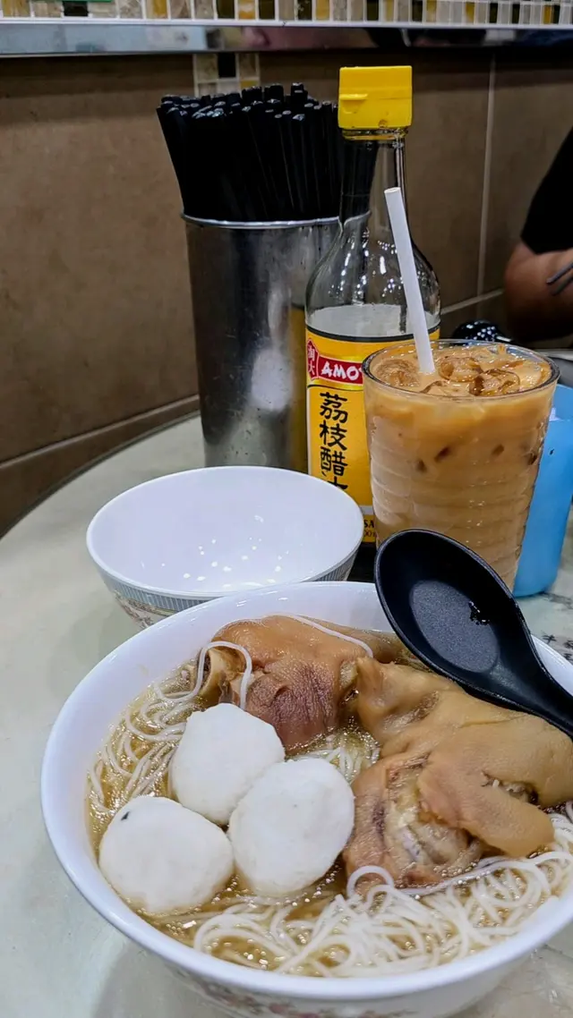 在為數不多的選擇中,選擇是豬手魚蛋米(連凍飲$50),豬手雖未算太入味,但就如筋腩一樣炆得十分稔滑,至於魚蛋就更讓人驚艷,軟綿綿的充滿魚味,有點相逢恨晚的感覺,仍然是又愛又恨的辣椒油,是一種自虐的刺激感,這些味覺記憶都會成為回憶。