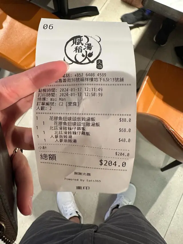再訪<賦湯稻火> meimay927等级42024-01-18885 浏览 关注 花膠魚翅蜾頭燉雞湯飯🐔足料鮮甜,飲落有骨膠原感,雞肉大大件。例湯,蕃茄🍅雜菜湯清甜北菇滑雞籠仔蒸飯🍚北菇雞香滑,飯蒸後仍然保持乾身有蛋香。人蔘燉雞湯🍲甘甜,香氣撲鼻#賦湯稻火📍地址: 油尖旺區 太子 大角咀嘉善街36號福祥樓地下6及13號舖#靚湯 #老火湯 #大角咀餐廳 #香港美食2以上食记乃用户个人意见 , 并不代表OpenRice之观点。赞好分享再訪<賦湯稻火> 賦湯稻火 https://s.openrice.com/QrLT05n5G00检举 张贴 评分5味道5环境5服务5卫生5抵食用餐途径堂食
