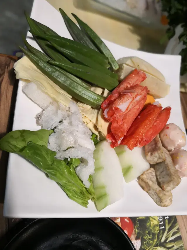 好貼心的服務,點菜紙有半份剔架,免得食唔哂,叫左蔬菜拼盤,有生菜,蓎蒿等,有大家都想食嘅蟹柳棒,秋葵,腐竹,蜂巢豆腐,南瓜,芋頭,冬瓜。清清地又幾好喔。