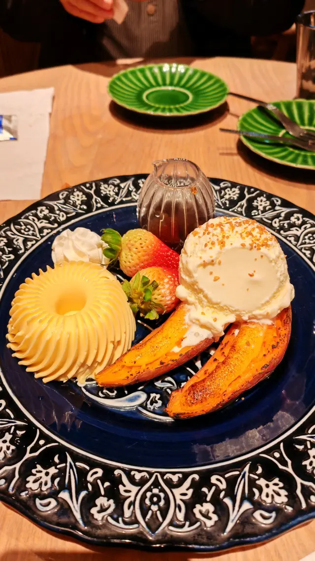 甜品時間真的很興奮,金甜薯配雪糕, 甜美又冰火嘅感覺。 日式布甸配搭黑糖醬汁, 布甸qq彈彈又香滑, 加上士多啤梨㗎即係女生嘅最愛。
