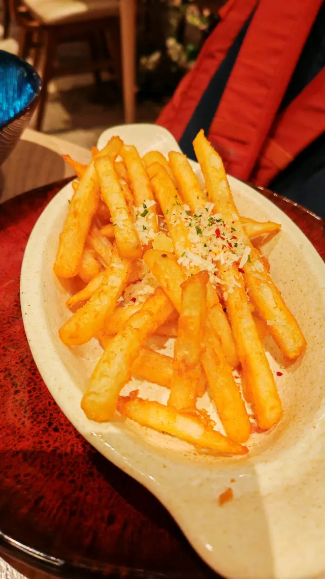 店員推介的暖暖鍋, 可以選擇大蜆或青口。真的很美味, 蜆肉鮮甜彈牙, 薯條加醬汁很match。