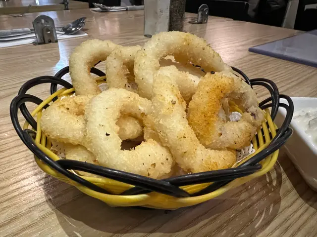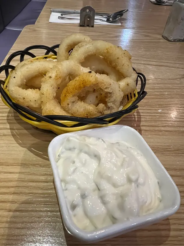脆炸魷魚圈。成個魷魚圈既粉底好輕身。沒有平時粉底既油膩。魷魚鮮甜。肉質鮮嫩。整體以論。配合得宜。