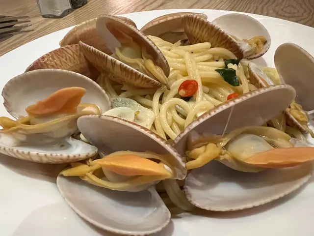 香蒜辣椒鮮蜆意粉。極新鮮既鮮蜆。入口香甜肉質鮮嫩。鮮味充斥成蝶意粉。再配而香蒜混和。整個味道構造完美無瑕!