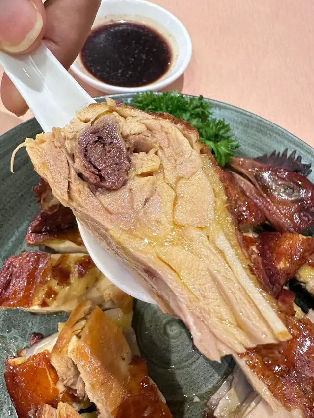瓏庭炸子雞:半隻都幾大隻,皮薄脆口,皮與肉中間脂肪唔多,多肉嫩滑,點埋旁邊豉油仲好食,幾好味。