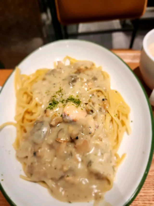 忌廉汁非常creamy🥰,三文魚份量非常之多😍,味道亦唔錯,相對蜆肉數量就唔係太多,不過味道還算可以😌。扁意粉軟硬度適中,非常掛汁,十分入味😋。