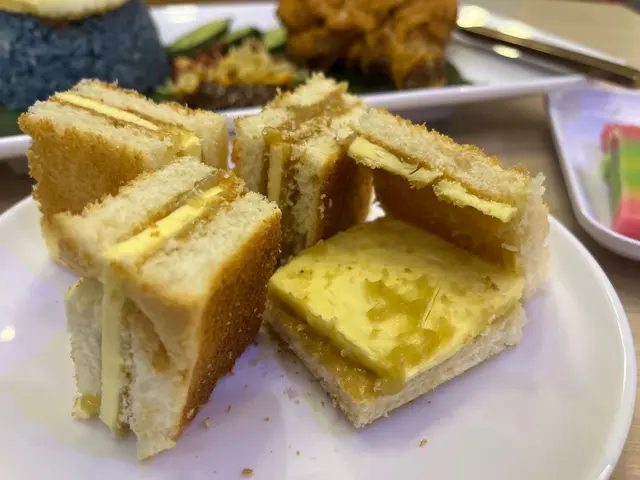 中間夾住斑蘭咖吔醬及處於半溶狀態既牛油