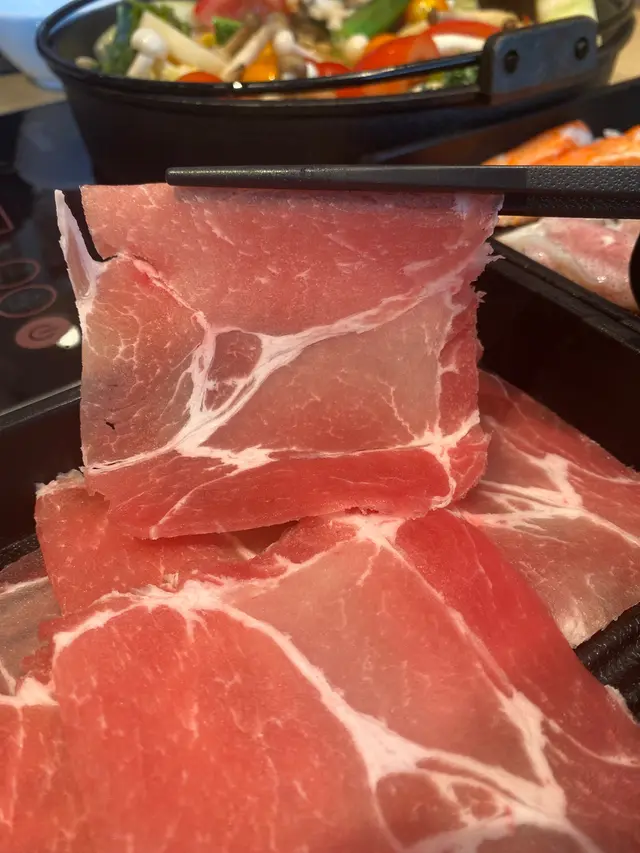 介紹完番茄壽喜燒湯底,就講下90分鐘嘅放題任食有咩好推介~首先第一樣梗係肉肉肉肉肉🥩,穀飼牛雪花分布平均,紋理細膩,入口富牛脂香氣;四元豚則肉質柔軟有彈性,沒有半點羶味;歐洲產豚肉雖然唔係呢一個套餐嘅主打但係質素都有驚喜,食落去嘅口感四元豚肥啲啲,冇咁有彈性,但係肉脂味突出少少,兩者各有千秋。中意海鮮的話,亦有蟹籽蝦滑、原隻魷魚仔、墨魚等等可以電話掃碼下單。