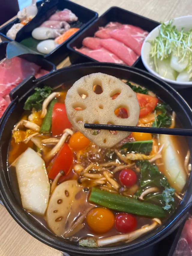素愛酸甜開胃嘅味道,今次就試咗牛陣嘅夏祭限定蕃茄壽喜燒湯底,湯底以自家調配嘅壽喜燒汁,加入原粒鮮蕃茄熬煮而成,上檯時候已經有加入多種當造野菜,貌相甚佳,亦令湯底更添清爽。