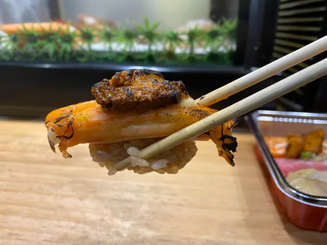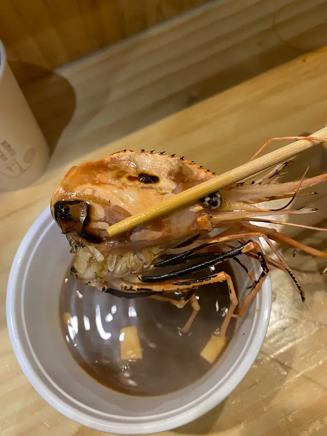 我首先叫咗一個燒蝦頭(配鮮蝦味噌湯),勁勁勁好飲,成個湯都係濃郁嘅蝦味,食埋個蝦頭入邊啲蝦膏精華,簡直係我飲過最好飲嘅味噌湯,鍾意食蝦嘅朋友一定唔可以錯過