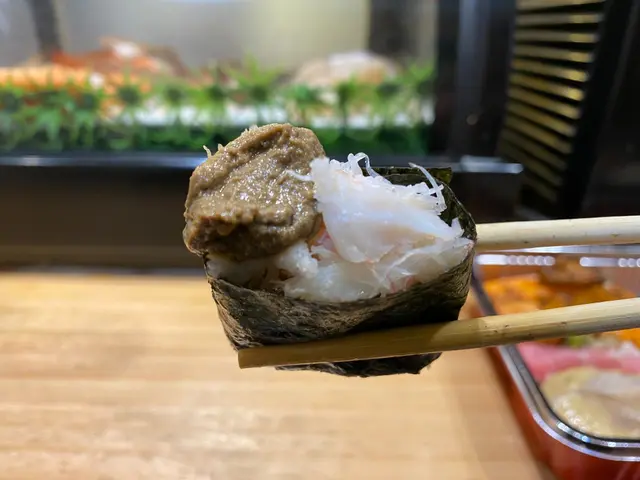 2.蟹肉蟹膏軍艦,見到飯上面嘅蟹肉同蟹膏已經知道不得了,蟹肉夠晒鮮甜,蟹膏味道相當香濃,兩者係絕配,滿分。