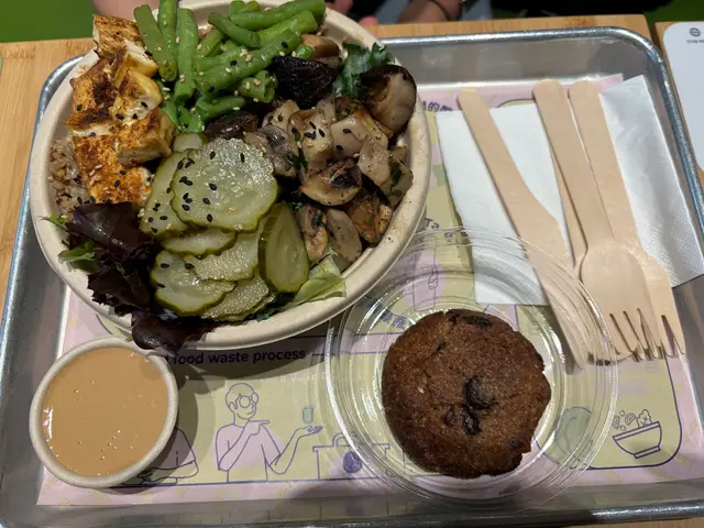 味噌醬有啲類似麻醬帶出左成碗素食既香味,底部仲有羽衣甘藍🥬,作為一個沙律碗share 唔錯