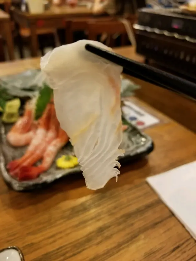 薄切嘅鯛魚,廚師真係好刀功,每一塊都切到可以透光。