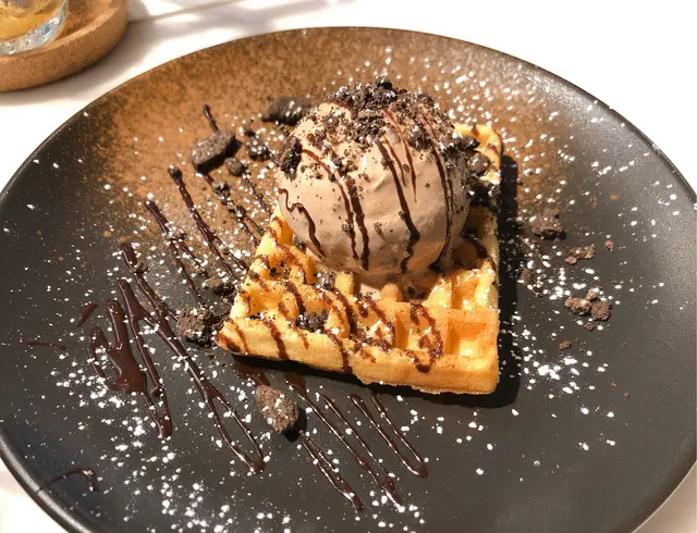 雪糕窩夫🧇:新鮮整出黎嘅窩夫,有好似雞蛋仔嘅香味,口感豐富滿足,配埋雪糕及Oreo碎一齊食好好味