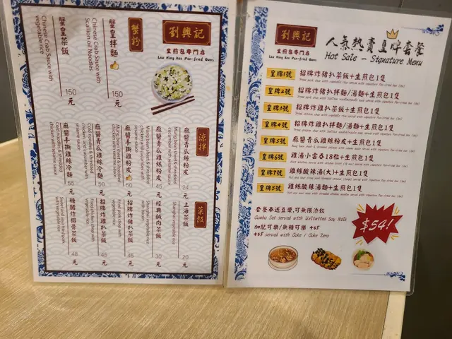 餐牌:生煎、湯麵、拌麵、小籠包、蟹粉、菜飯、小食、涼拌、飲品,都有人氣熱賣皇牌套餐。落單掃QR code。