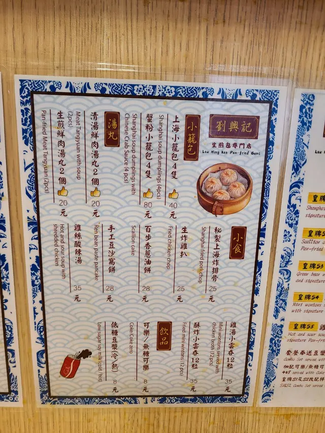 餐牌:生煎、菜飯、湯麵、拌麵、蟹粉、小食、涼拌、湯丸、小籠包、飲品,都有人氣熱賣皇牌套餐。落單掃QR code。