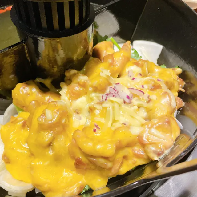 個雞煲一上枱,芝士香味已經撲鼻而嚟!🧀 雞肉好嫩滑,索晒啲芝士汁,每一啖都充滿濃郁嘅芝士味,正到爆!😋 個湯底唔會太鹹,啱啱好,撈飯一流!🍚 不過如果芝士可以再拉絲啲就perfect池啦!😎