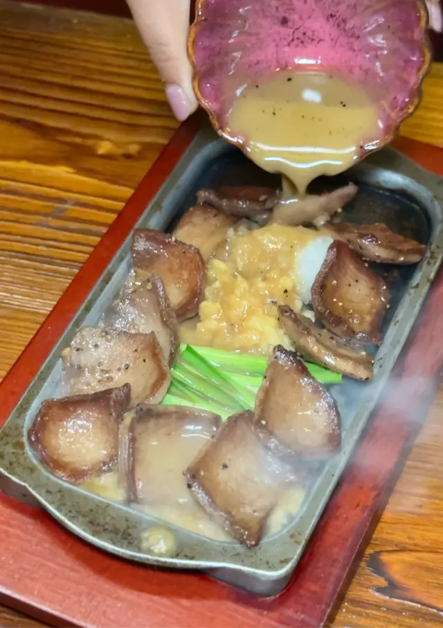 上菜嗰時店員會再加埋醬汁 出晒煙好吸引