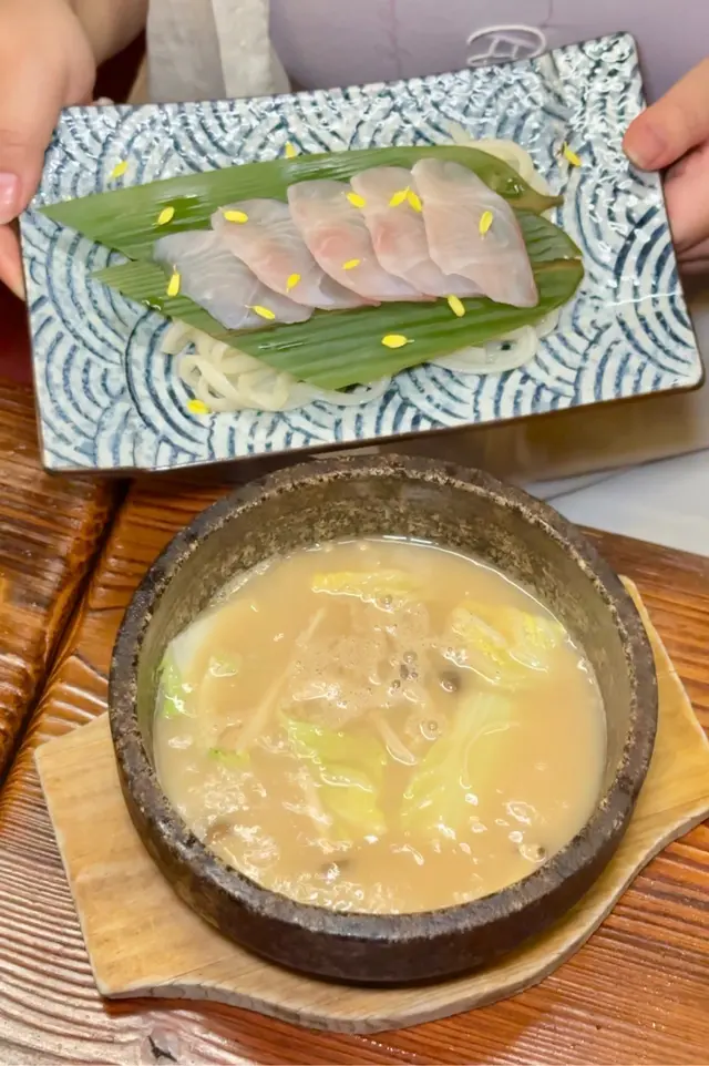 自己再加新鮮鯛魚片入湯底