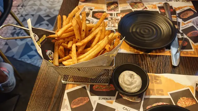 單食雞翼比較單調,配料我哋加咗炸薯條配黑松露蛋黃醬,都係炸得好脆好好食。