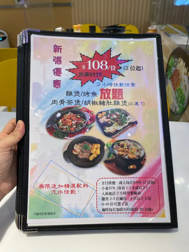 🤩餐廳現時推出新張優惠,雞煲、烤魚、酸菜魚及肉骨茶放題一律 $108 (2位起)