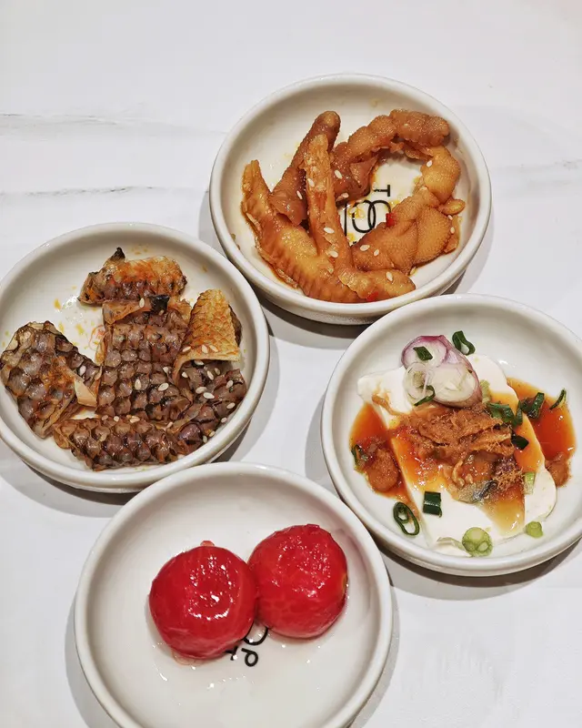 另外台式前菜🥰都好正,有酸香醒胃冰釀梅汁蕃茄🍅,Q彈惹味青麻椒辣魚皮🐟,爽口藤椒虎皮雞爪🐓同埋鹹香可口嘅肉鬆皮蛋🥚豆腐。