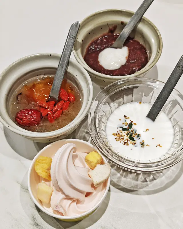 甜品🍮款式唔算多但係好高質👍,桃膠銀耳羹好滋潤,TOPPOT滿滿桃膠🥛牛乳超香甜,手打·麻薯紅豆沙🫘層次豐富,另外仲有白桃乳酪🍦軟雪糕,真係超級滿足呀!