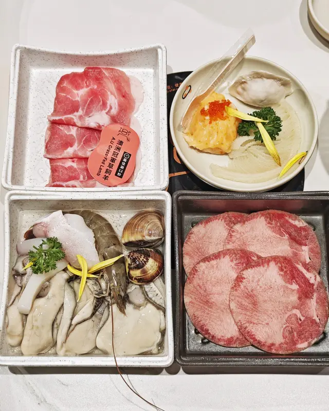 海鮮最驚喜係有🦪超鮮生蠔,海水味濃,creamy 飽滿。🦐鮮蝦爽口彈牙,🦑水上鮮墨魚鮮甜度滿分✨,仲有蟹子花枝滑同埋🍤啖啖蝦肉嘅蝦滑!