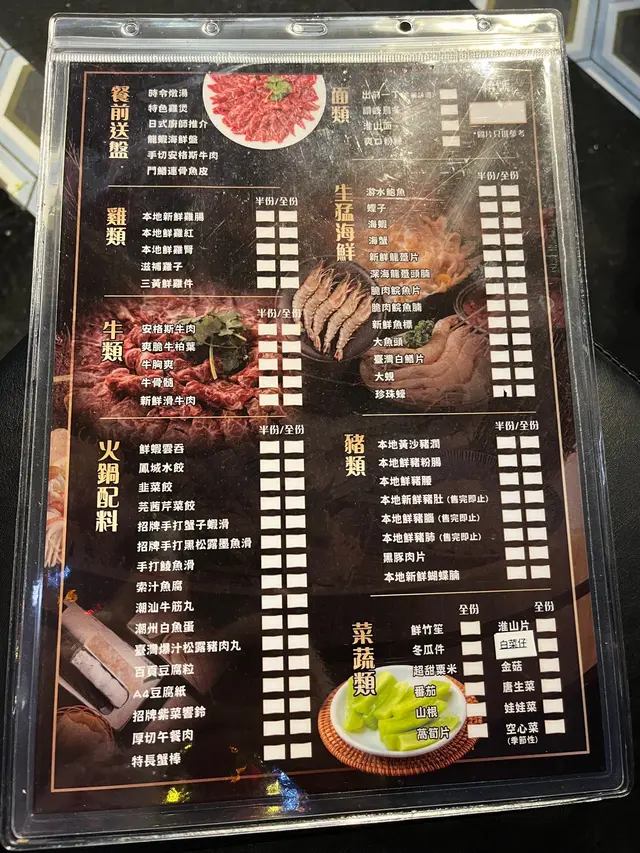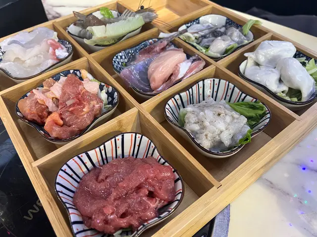 其他火鍋配料九宮格咁上幾精緻✨安格斯肥牛好夠牛脂,質素高,手打黑松露墨魚滑,海鮮味濃口感好好👍🏻鮮蝦勁癲,真係撈上黎仲會跳🦐珍珠蠔size細細但蠔味好濃,深海龍躉片係必必必必食,好鮮味又大舊,肉質一流啖啖肉😋
