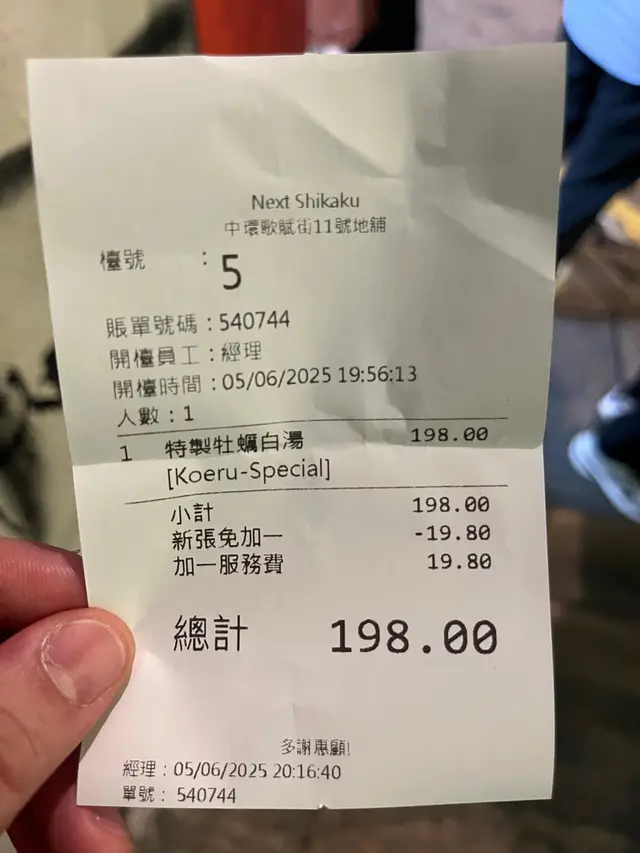 食麵時間,面身彎彎地幾有咬口,掛湯掛得好犀利😎因為湯都好濃,食落去啲面啖啖都好蠔鮮,好正😆驚人size嘅牡蠣,大大粒,食落好肥美,好重蠔味👍🏻櫻木煙燻糖芯蛋,真係有啲煙熏味,流心配埋蠔湯食好好味😋慢煮叉燒,火炙過兩面,真正係燶邊叉燒,食落有焦香肥瘦適中,相當唔錯😌