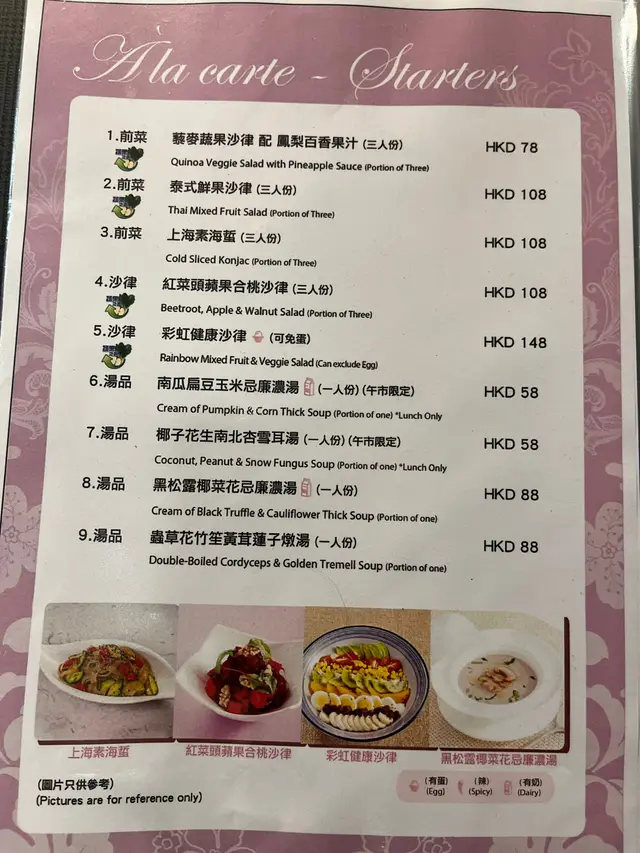 雅悠蔬食,位於尖沙咀,近尖東地點方便,店主好有心❣️推廣素食多年,餐廳裝修以粉紫色為主,優雅嘅感覺🪻餐牌好細心咁寫咗邊啲有蛋、邊啲有奶,方便根據個人飲食習慣同體質去揀食物😎蔬菜有之餘,素腸、素鰻魚都有👍🏻