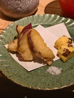 番薯天婦羅配蘭姆葡萄奶油🧈的番薯🍠口感綿密軟糯。蘭姆葡萄奶油味道層次豐富,結合了牛油、酒香和提子🍇乾的香甜味。