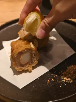 從多款炸串中,選了其中2款。2款外層炸得酥脆。芝麻豆腐口感水嫩柔軟。雞蛋豬肉卷的雞蛋🥚呈流心狀,放入口中,蛋黃漿流得滿口也是。