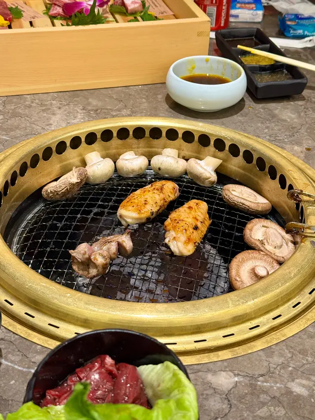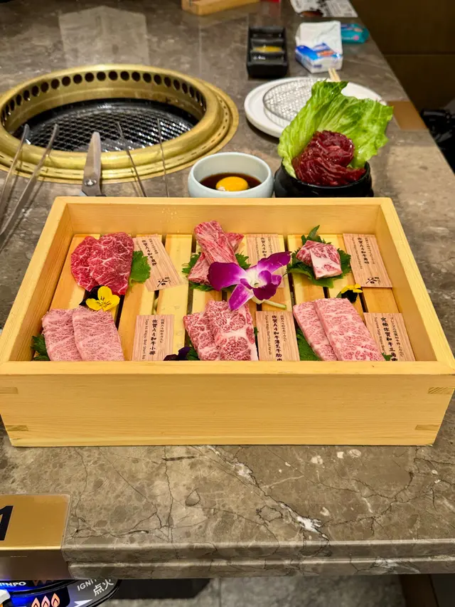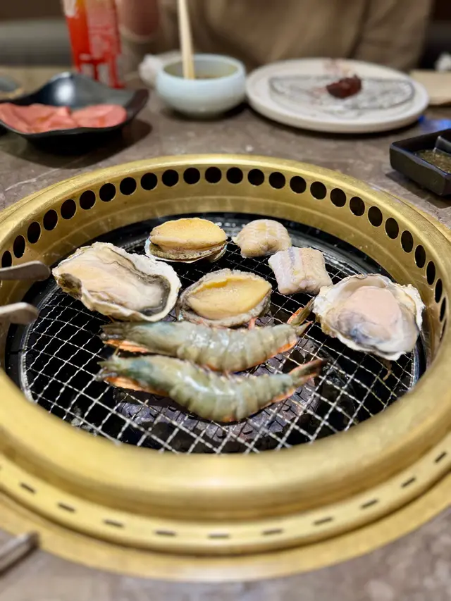 包括和牛三角嫩肌、和牛薄炙牛肋肉、和牛角切、和牛肩胛、和牛小排、和牛牛肋條,仲可以無限享用多款海鮮, 如似大海老、生蠔、原條魷魚等等😌