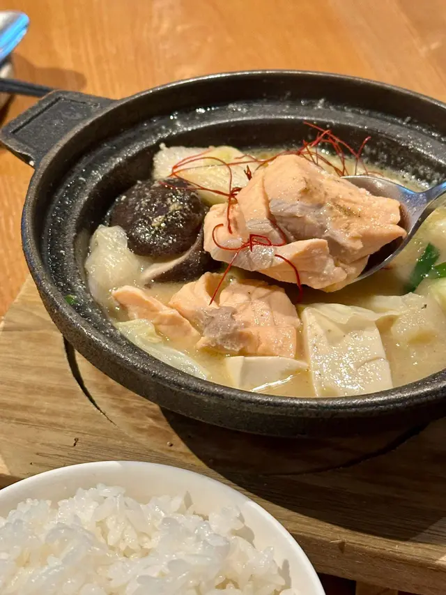 鮭魚煮得剛好,魚肉鮮嫩無腥,湯底帶陣淡淡海鮮鮮味,配料有豆腐、大蔥同椰菜等,湯多料豐富,食完幾暖胃