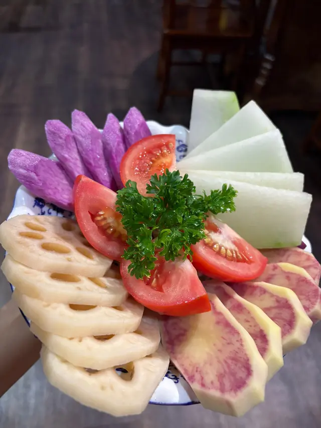 即係蔬菜拼盤,裡面有淮山、馬鈴薯、冬瓜、蓮藕、番茄,食材新鮮,色彩好繽紛,當中最中意好索湯嘅紫淮山。