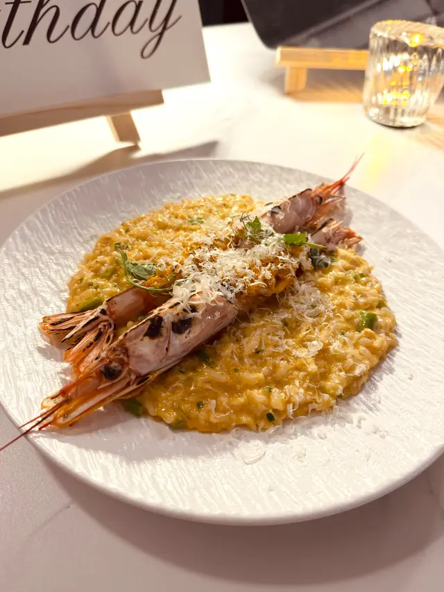 侍應上碟時會即場刨芝士落紅蝦上面,以大閘蟹嘅膏煮成意大利飯,好creamy,口感細膩嫩滑又帶有甘香鮮味~