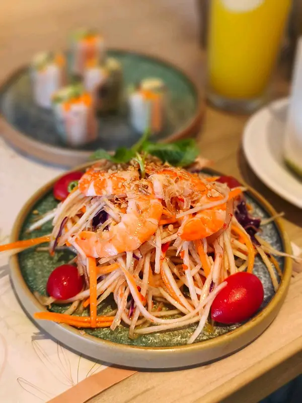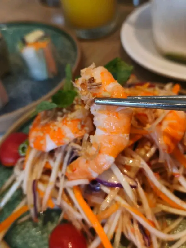 🥢大蝦青木瓜沙律 $72:青木瓜新鮮好食,撈伴菜做沙律,酸甜又少少辣,好惹味。面頭有開邊大蝦,蝦肉結實彈牙。