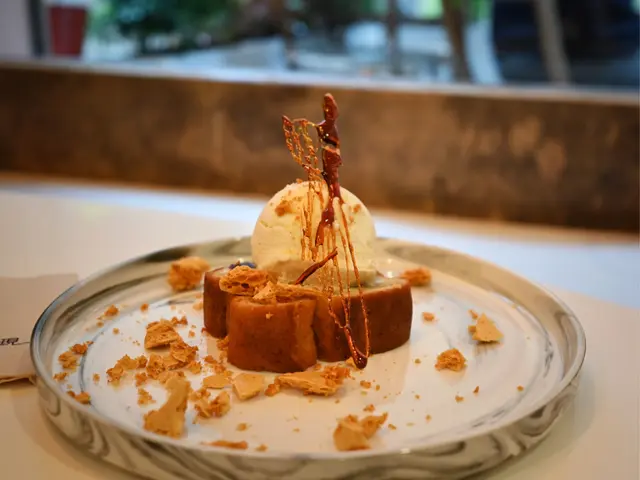 - 有驚喜,除咗presentation靚之外,佢嘅香蕉蛋糕微熱,加上雲呢拿雪糕,而側邊仲有一啲焦糖脆粒,非常好味