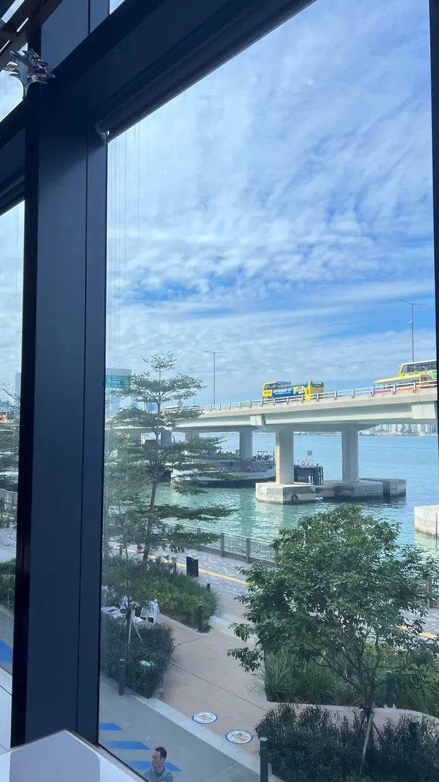 晚上玻璃反光,餐廳的霓虹招牌會倒影係橋上,很靚,下次必訪馬灣分店。