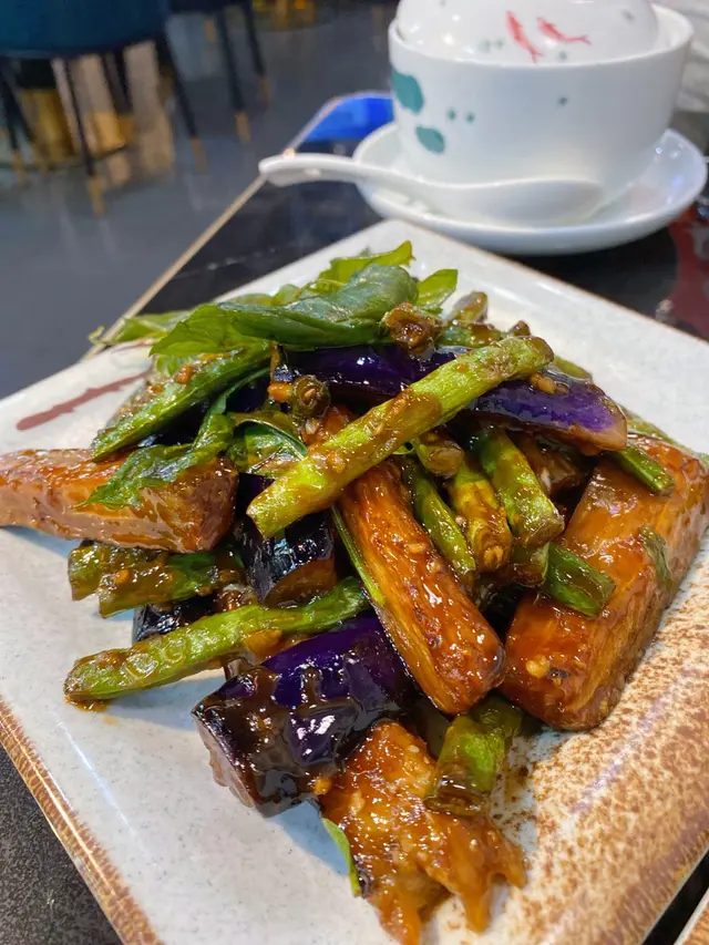 用九層塔少茄子四季豆味道原來好特別, 真係好香, 味道幾夾, 可能茄子泡油再炒, 及吸油關係, 比較油膩少少。四季豆爽口, 跟茄子一軟一爽, 好特別。