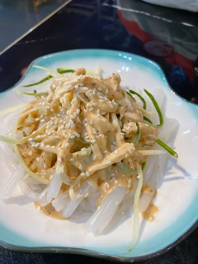 麻醬同粉皮一向都好夾, 粉皮滑滑的, 半透明, 雞絲嫩滑, 又有啲麻香味, 真係一個好好嘅涼拌小食呀!