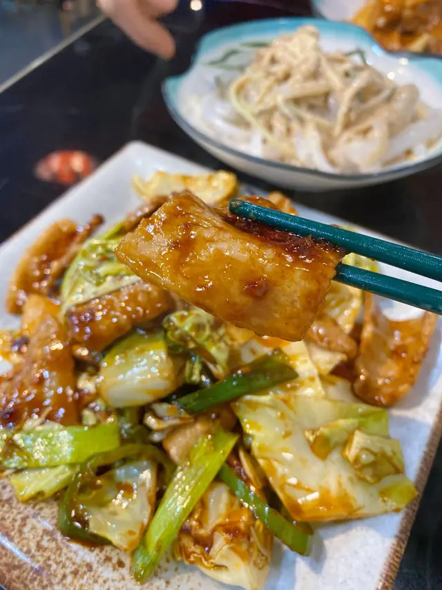 高麗菜及五花腩豬肉片用調味醬炒, 五花腩豬肉片軟嫩但唔係太肥, 菜都好夠新鮮有咬口; 好似欠咗啲辣味, 如有應該更加香口, 但都唔錯。