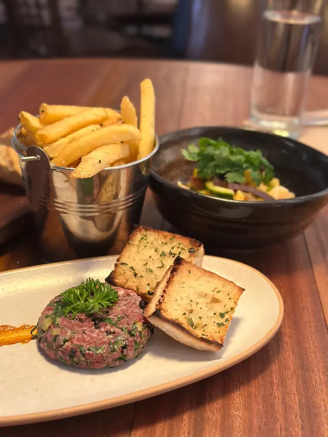 生牛肉最講究牛肉的新鮮度,必須要現絞現做,鮮紅的牛肉與歐芹、洋蔥粒同埋魚子醬撈埋一齊,點少少芥末醬,連同香脆的法包一齊食,可以食到鮮甜的牛肉味,一啲都唔腥。裡面仍然可以食到細細粒的牛肉,口感豐富😋