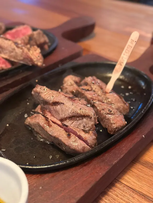 Flat iron 是牛肩部分的嫩肉,脂肪分佈均勻,口感有啲似ribeyes 咁嫩,牛扒已經調過味,適量的調味令到牛肉味更濃郁,微焦脆的外層,粉紅色的切面,食落柔嫩多汁😋最簡單的調味已經足以凸顯牛肉原有的肉香味!
