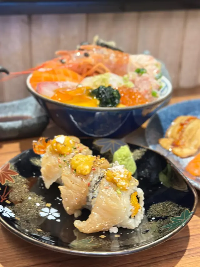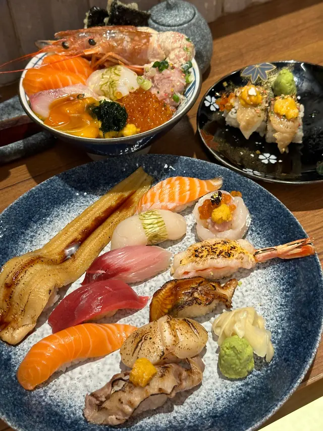 壓軸嘅究極之戀壽司果然名不虛傳!將拖羅、海膽、三文魚子堆成小山,一啖放入口,三種唔同口感同時爆發——拖羅嘅豐腴、海膽嘅creamy、三文魚子嘅爆漿,簡直係味覺盛宴!雖然價錢貴少少,但絕對物有所值~
