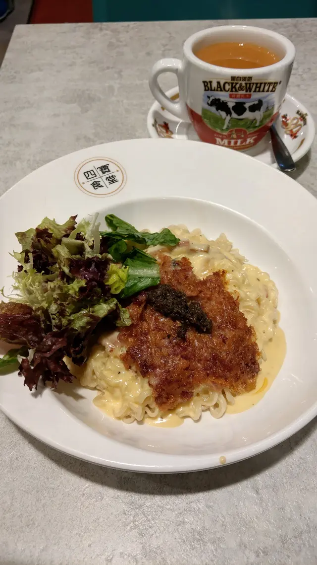 記得 check in 當日,跟媽咪經過酒店附近電氣道有些餐廳,有間茶餐廳 <四寶食堂>,晚餐款式既健康又特色多元化!