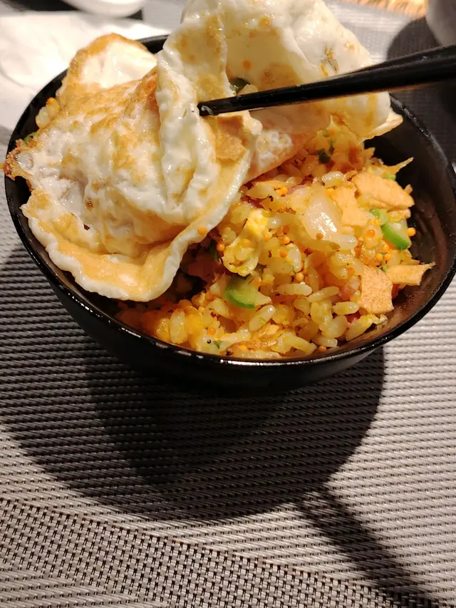 今餐有好多驚喜,第一個驚喜就係為我哋下廚係一位後生靚女廚師,通常日本料理都係男廚師多,好少見女的。第二個驚喜就係呢個蝦乾蟹子炒飯,一個看似簡單平凡嘅炒飯,但食起來色香味俱全。整到成心型俾我哋打卡,飯炒到粒粒分明金黃。最後仲細心問我哋需唔需要加隻蛋,要太陽蛋、煎蛋、還是荷包蛋?呢個炒飯真係好暖心😂