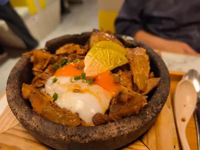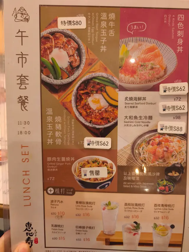 燒豬軟骨溫泉玉子丼:白飯的份量和鰻魚丼一樣都是偏少,至於豬軟骨的口感有點堅韌,質感並不夠柔軟嫩滑,味道正正常常吧,不過它是特價餐,以$62的價錢有主菜+前菜+飲品來說,算是不錯了。
