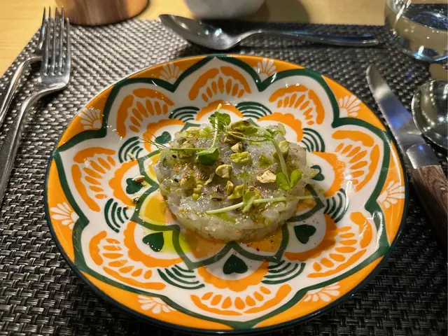 一開始以為一粒燒賣🤣,實際上是脆酥皮里便鋪滿三文魚🐟作為開胃菜,開胃請賣相吸睛。🤩